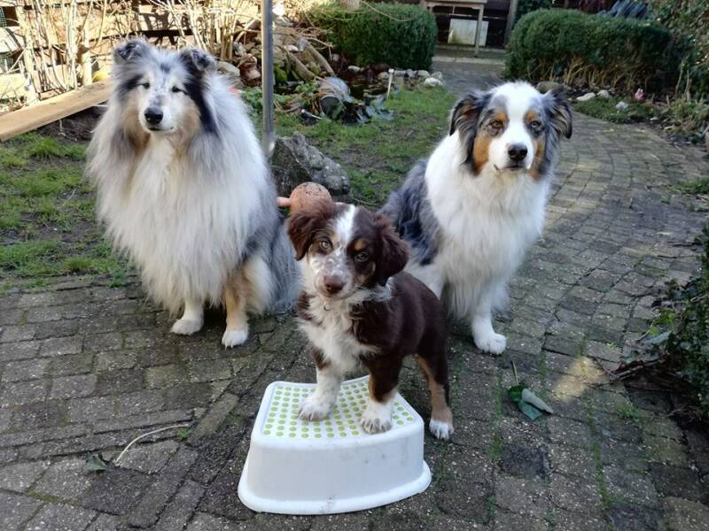 We zijn nu eigenlijk nog het meest bezig met opvoeden, niet opspringen "pootjes op, pootjes LAAG" onder toeziend oog van de mannen die het uiteraard heel graag voor willen zeggen.......